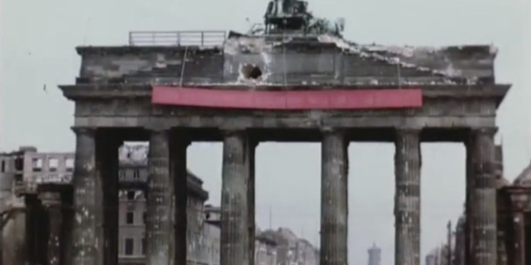 Ωστόσο έγχρωμο υλικό που δείχνει την ακόμα κατεστραμμένη πόλη και που τραβήχτηκε τον Ιούλιο του 1945 μας ανοίγει ενα παράθυρο στον χρόνο και στις μέρες που ακολούθησαν την πτώση του Τρίτου Ράιχ σ’ενα απόλυτα κατεστραμμένο Βερολίνο.