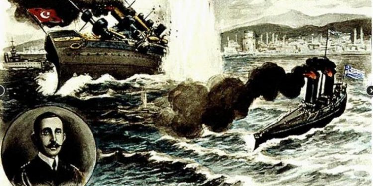 ετορπίλισεν επιτυχώς τουρκικόν πολεμικόν «ΦΕΤΙΧ ΜΠΟΥΛΕΝ» αφήσαν βυθισμένο. Κατέπλευσεν Αικατερίνη αβλαβές.