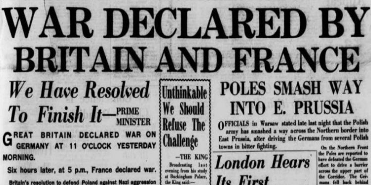 1939…. Β’ Παγκόσμιος Πόλεμος: Βρετανία και Γαλλία κηρύσσουν τον πόλεμο στη Γερμανία, μετά την εισβολή της τελευταίας στην Πολωνία.