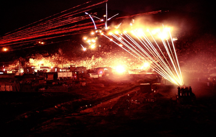 Οι στρατιώτες εκτόξευσαν τότε φωτοβολίδες στους λόφους και πολυβόλα M-60 άρχισαν να πυροβολούν. Οι σφαίρες απο τα πολυβόλα ειναι ορατές.