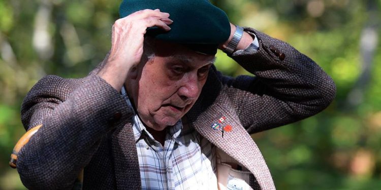 Ο Φράνκ Κράμπ ,94 ετών σήμερα ξαναφόρεσε τον πράσινο μπερέ που του απένειμαν οι Βρετανοί σε ένδειξη τιμής και σεβασμού.
