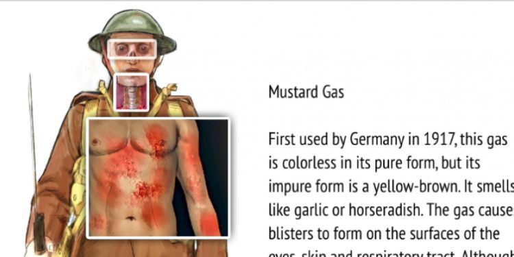 Το Stratfor σ΄ ένα εκπληκτικό γράφημα δείχνει τι προκαλεί στον ανθρώπινο οργανισμό καθένα από τα χημικά που κατά καιρούς χρησιμοποιήθηκαν σε πεδία μάχης. Κάνετε κλικ πάνω σ΄ ένα από τα χημικά και στον στρατιώτη της φωτογραφίας διπλα “αποκαλύπτονται” τα θανάσιμα προβλήματα που προκαλούνται στον οργανισμό του.