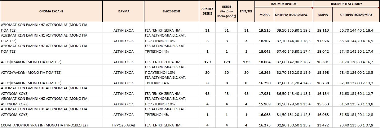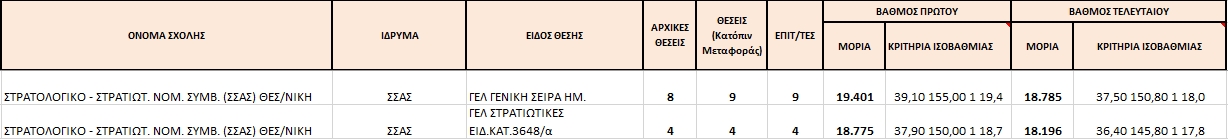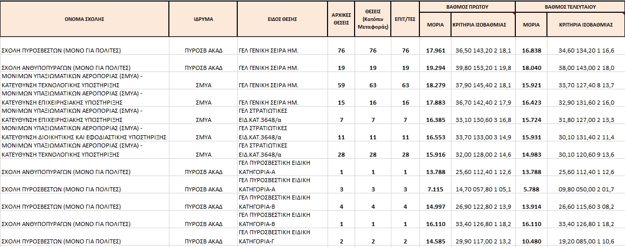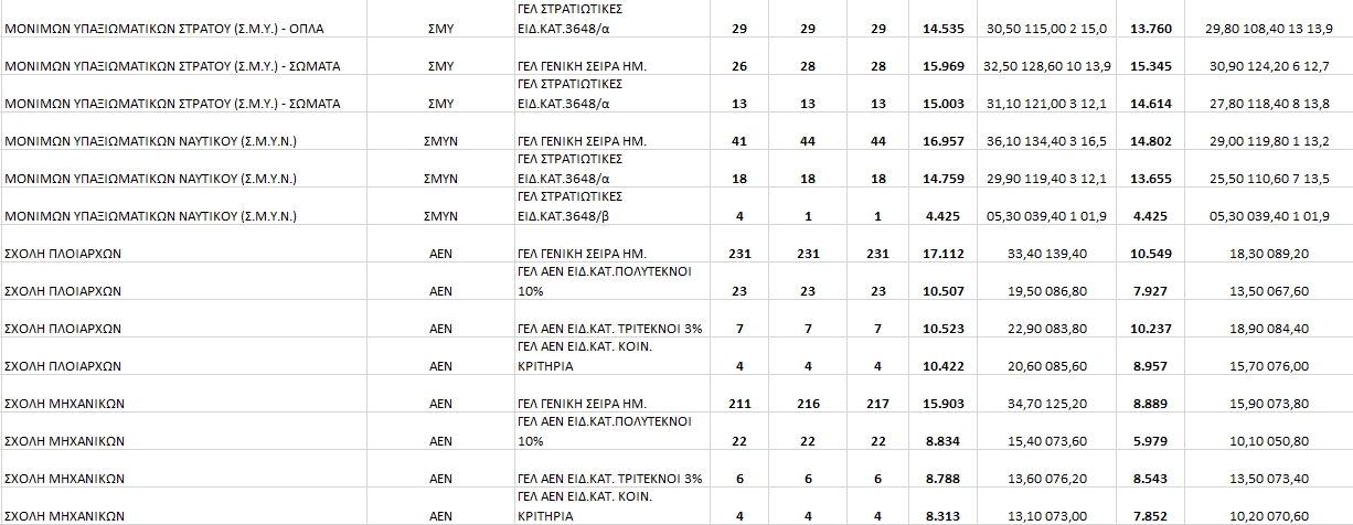 Όσον αφορά τις Στρατιωτικές Σχολές, αξιοσημείωτη είναι η πτώση της βάσης στη Σχολή Ικάρων – Ιπτάμενοι που έφτασε περίπου τα 600 μόρια, ενώ την ίδια ώρα στη Σχολή Ικάρων – Μηχανικοί έχουμε άνοδο της τάξης των 300 μορίων.