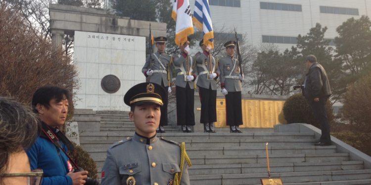 Η επίσημη επίσκεψη ολοκληρώθηκε με τρισάγιο και κατάθεση στεφάνου, εκ μέρους του Προέδρου της Δημοκρατίας, στο μνημείο των Ελλήνων πεσόντων του Εκστρατευτικού Σώματος του πολέμου της Κορέας (1950 -53).