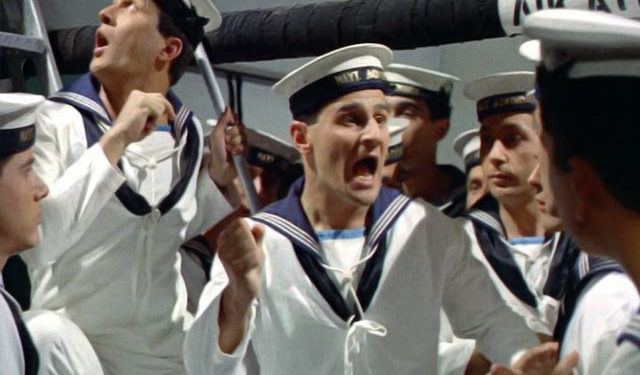 Ο αξιωματικός που συνόδευε το συνεργείο μου λέει “θα γυρίσουν μια σκηνή με τον Μαλούχο να φασινάρει την πρύμη με τον άγριο Οπλονόμο (άλλος ηθοποιός) να του κάνει συνεχώς παρατηρήσεις και στο τέλος να τον πετάει στη θάλασσα! Σε παρακαλώ, βρες έναν σβέλτο κολυμβητή από το πλήρωμα να είναι ήδη στη θάλασσα και να τον βοηθήσει γιατί ο Μαλούχος δεν ξέρει και καλό κολύμπι και ανησυχεί”.