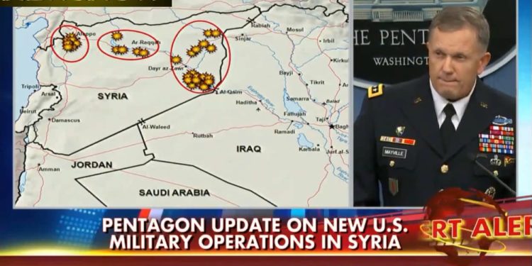 Αν και οι ένοπλες δυνάμεις των ΗΠΑ έχουν εξαπολύσει σχεδόν 200 πλήγματα στο Ιράκ τις τελευταίες εβδομάδες, η εκστρατεία που άρχισε αυτή την εβδομάδα ανοίγει ένα νέο μέτωπο, στη Συρία, και ουσιαστικά σηματοδοτεί την εμπλοκή της Ουάσινγκτον στον συριακό εμφύλιο πόλεμο, ο οποίος διαρκεί τρία χρόνια. Στα πρώτα πλήγματα συμμετείχαν και αραβικά κράτη. Μέχρι στιγμής έχουν γίνει 20 αεροπορικές επιδρομές εναντίον στόχων του ΙΚ, σύμφωνα με την Κεντρική Διοίκηση.