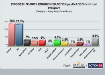 Read moreΗ δημοσκόπηση της εταιρείας Pulse για το Action24 δείχνει πως η μέρα της εκλογικής μάχης θα εξελιχθή σε θρίλερ