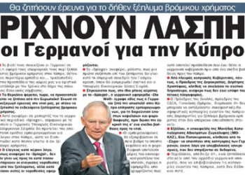 Read moreΤα τεκταινόμενα στις Βρυξέλλες σε ότι αφορά στο κυπριακό μνημόνιο και οι κατηγορίες για ξέπλυμα βρώμικου χρήματος στην Κύπρο κυριαρχούν ...