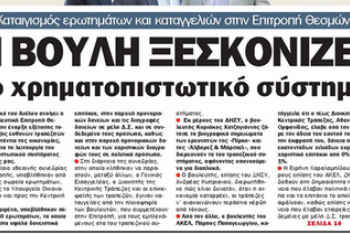 Read moreΗ χθεσινή συνεδρία της Επιτροπής Θεσμών της Βουλής κατά την οποία άρχισε η εξέταση για τυχόν ευθύνες τραπεζιτών για την ...