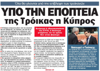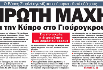 Read moreΗ χθεσινή καταρχήν συμφωνία μεταξύ Κυβέρνησης και Τρόικας για συνομολόγηση της δανειακής σύμβασης για την Κυπριακή Δημοκρατία, μονοπωλεί τα πρωτοσέλιδα ...
