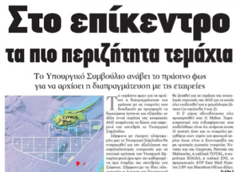 Read moreΗ απόφαση του Υπουργικού Συμβουλίου για καταρχήν χορήγηση άδειας για τέσσερα τεμάχια στην κυπριακή ΑΟΖ στις κοινοπραξίες ENI, Cogas, Total ...
