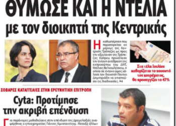 Read moreΟι αντιδράσεις κατά του διαχωρισμού της Τράπεζας Κύπρου σε εμπορική και κτηματική κυριαρχούν στα πρωτοσέλιδα του σημερινού κυπριακού Τύπου.