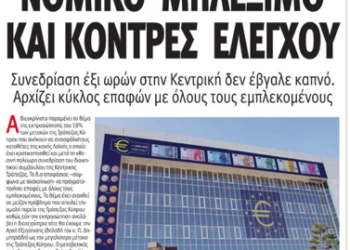 Read moreΗ χθεσινή πολύωρη συνεδρία του ΔΣ της Κεντρικής Τράπεζας ειναι το βασικό θέμα σήμερα.