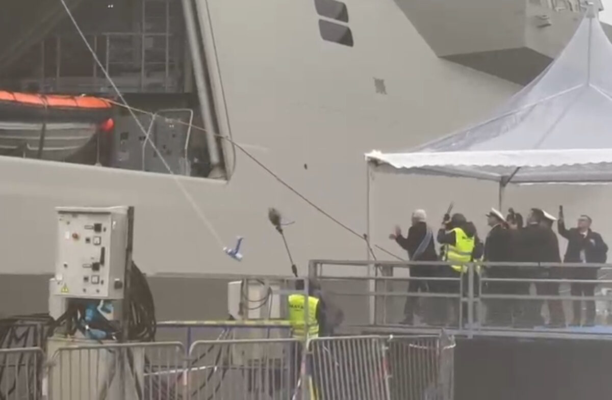 Δείτε το χαρακτηριστικό στιγμιότυπο από την ονοματοδοσία της φρεγάτας «Κίμων», όπως το κατέγραψε ο απεσταλμένος του On Alert.gr στο Λοριάν, Κώστας Σαρικάς.