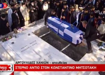 Σε κιλλίβαντα πυροβόλου οδηγήθηκε στην τελευταία του κατοικία ο πρώην πρωθυπουργός Κωνσταντίνος Μητσοτάκης ενώ συμπατριώτες του τον κατευόδωσαν με ριζίτικα ...