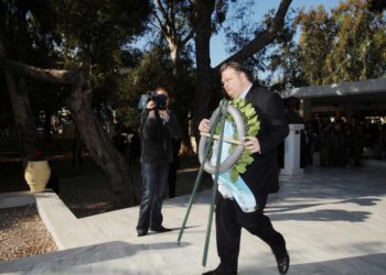 Ο ΠτΔ κατέθεσε στεφάνι στην προτομή του Σπύρου Μουστακλή