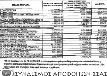 Πόσα λεφτά έχασαν τα ταμεία των στρατιωτικών.Πίνακας