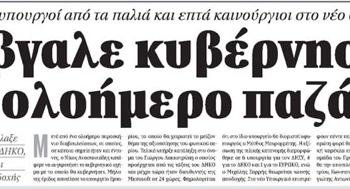Read moreΟλες οι εφημερίδες προβάλλουν πρωτοσέλιδα τη σύνθεση του νέου Υπουργικού Συμβουλίου που αναμένεται να ανακοινωθεί σήμερα.