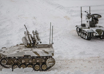 Read moreΔύο ρωσικά μη επανδρωμένα τεθωρακισμένα (UGVs) εξοπλισμένα με πολυβόλα και αντιαρματικούς εκτοξευτές.