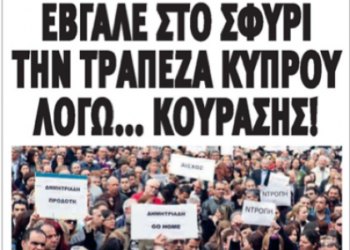 Read moreΟι αντιδράσεις κατά του διαχωρισμού της Τράπεζας Κύπρου σε εμπορική και κτηματική κυριαρχούν στα πρωτοσέλιδα του σημερινού κυπριακού Τύπου.