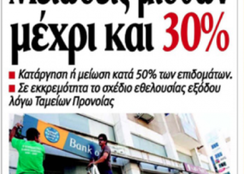 Read moreΟι αποφάσεις για περικοπές μισθών και άλλων ωφελημάτων στην Τράπεζα Κύπρου ειναι ενα απο τα σημερινά θέματα στον κυπριακό τύπο.