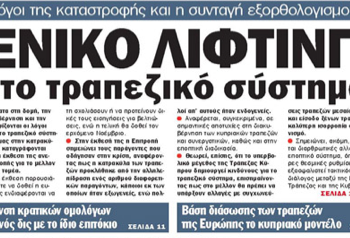 Read moreOι εξελίξεις σε ό,τι αφορά την έξοδο της Τράπεζας Κύπρου από τo καθεστώς εξυγίανσης ειναι στα σημερινά πρωτοσέλιδα
