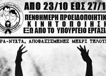 Read moreΟ Σύλλογος ΑΞ.Ι.Α ξεκινά σήμερα 23 Οκτωβρίου «Πενθήμερη Προειδοποιητική Κινητοποίηση» έξω από το Υπουργείο Εργασίας, μέρα και νύχτα.