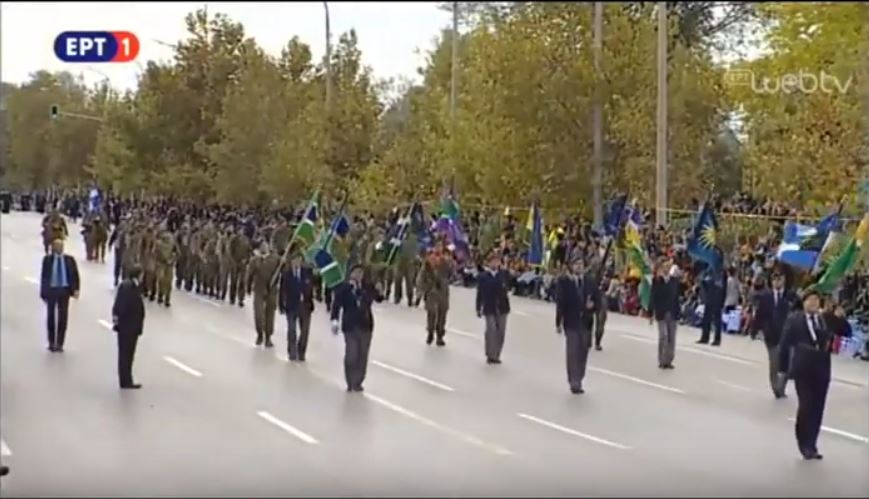 Υπό τους ήχους του εμβατηρίου «Η Ελλάδα ποτέ δεν πεθαίνει, δεν τη σκιάζει φοβέρα καμιά» παρέλασαν οι έφεδροι στην Θεσσαλονίκη, στο τέλος της παρέλασης των πολιτικών τμημάτων και λίγο πριν αρχίσει η στρατιωτική παρέλαση.