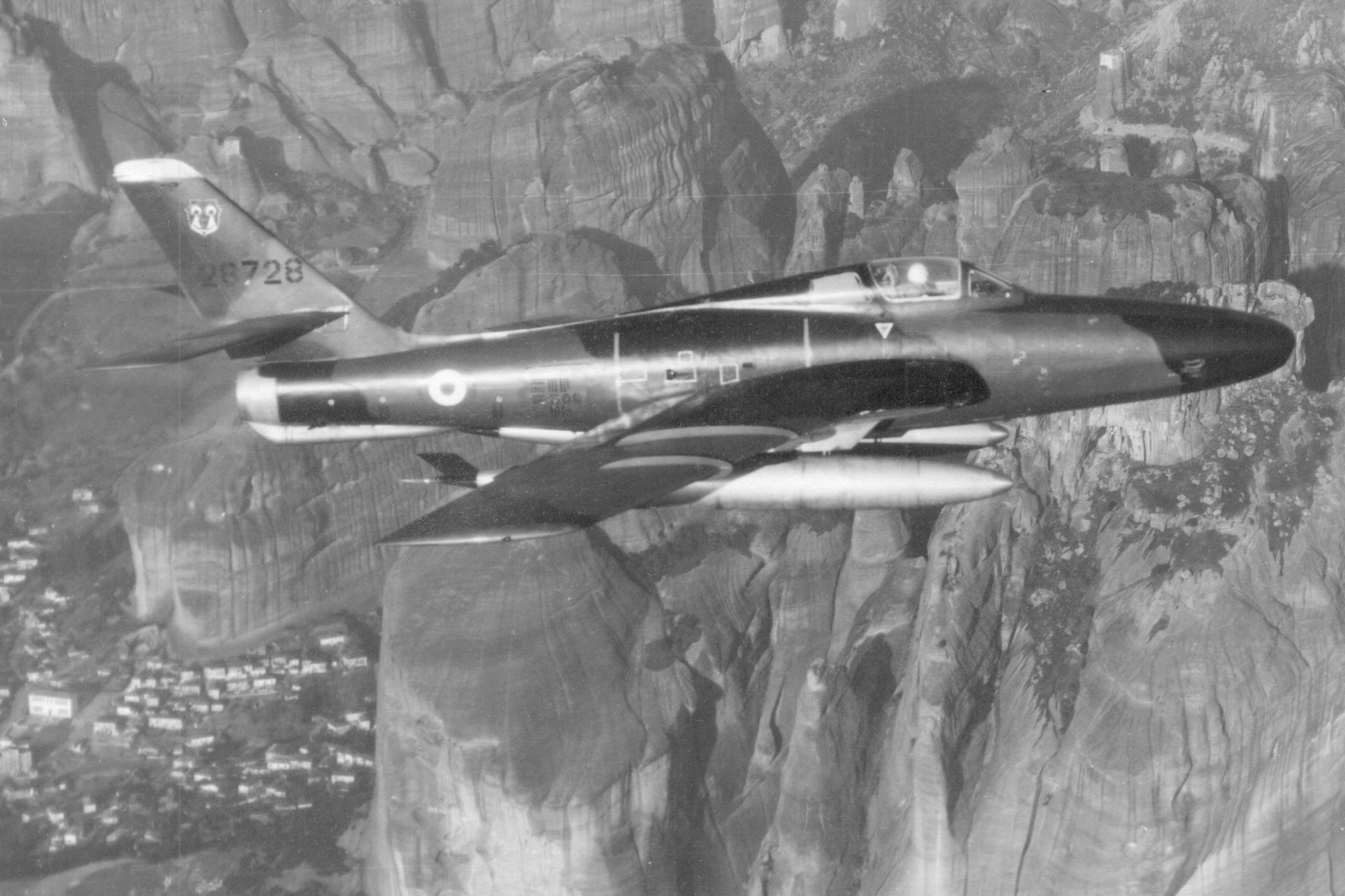 Στην Λάρισα, η παρουσία των Thunderflash δεν άργησε να γίνει γνωστή: στις 13 Σεπτεμβρίου 1956, η χαρακτηριστική βροντή που ακούσθηκε ανατολικά του αεροδρομίου καθώς το «28728» του Υπσγού (Ι) Απόστολου Αντωνιάδη έσπαγε σε ρηχή βύθιση το φράγμα του ήχου, φρόντισε γι’ αυτό! Αντίθετα με τα RT-33A που απετέλεσαν μια μεσοπρόθεσμη λύση ανάγκης, το RF-84F σχεδιάσθηκε αποκλειστικά για τον ρόλο της τακτικής αναγνώρισης, παρέχοντας δυνατότητες που αξιοποιήθηκαν κατάλληλα και σε άκρως απόρρητες πτήσεις για την αποτύπωση στόχων στις γειτονικές χώρες του Ανατολικού Μπλοκ.