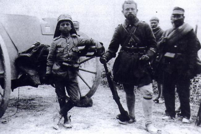 Η ΕΣΤΙΑ , έγραφε: “Σας παρουσιάζομεν σήμερον τον μικρότερον υπαξιωματικόν του Ελληνικού Στρατού. Είναι ηλικίας 12-13 ετών και κατάγεται από το Φισκάρδον της Κεφαλληνίας. Το όνομα του ΓΕΡΑΣΙΜΟΣ ΡΑΥΤΟΠΟΥΛΟΣ (αριστερά στην εικόνα). Ο πατέρας του αρτοποιός εις την Ύδραν, η μητέρα του μένει εις τον Πειραιάν και αυτός ήτο υπηρέτης εις Πύλον όπου τον εύρεν η επιστράτευσις.