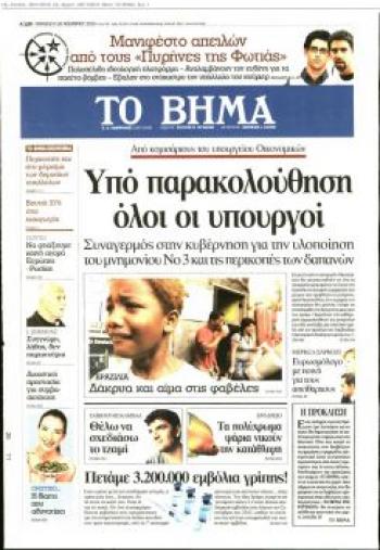 «Χθες Πέμπτη 25 Νοεμβρίου 2010 διάβασαν «Το Βήμα» περίπου 90.000 αναγνώστες. Εξ αυτών μόνον 8.000 διάβασαν την έντυπη έκδοση της εφημερίδας. Οι συντριπτικώς περισσότεροι, πλέον των 82.000, αναγνώστες προτίμησαν την ηλεκτρονική έκδοση.