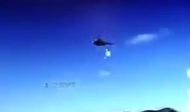 Όταν όμως το τρίτο φορτίο πέφτει το ελικόπτερο χάνει γρήγορα υψόμετρο καθώ το αλεξίπτωτο του φορτίου μπλέκεται στο ουραίο στροφείο. [Το πρόσωπο που γύρισε το περιστατικό σταμάτησε το γύρισμα λίγο πριν την έκρηξη του αεροσκάφους ωστόσο το βίντεο παραμένει εντυπωσιακό].