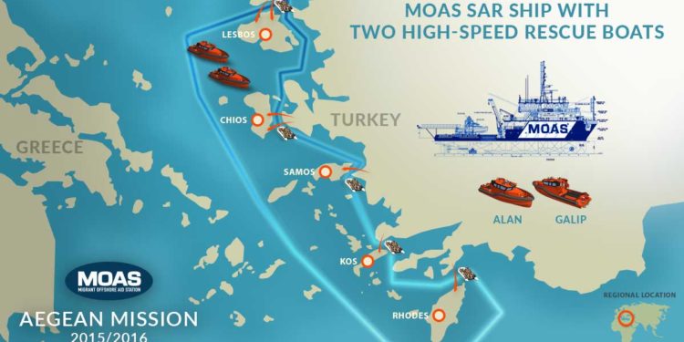 Στον χάρτη που δημοσιεύεται στην ιστοσελίδα της moas.eu φαίνονται οι περιοχές όπου σκοπεύουν να κάνουν “έρευνα και διάσωση”. Η ισροσελίδα της έχει ενδιαφέρον .Υπάρχει ολόκληρη κατηγορία για την “αποστολή στο Αιγαίο”.