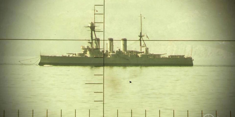 Φωτογραφία του Θ/Κ Γ. Αβέρωφ μέσα από το περισκόπιο του Υ/Β ΤΡΙΤΩΝ κατά την συνάντηση εν πλω στο ταξίδι του Θ/Κ για Θεσσαλονίκη.
