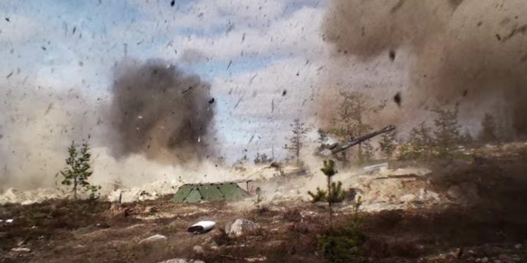 Κατά τη διάρκεια μιας άσκησης στο Rovajärvi της Λαπωνία , Φινλανδοί στρατιώτες τοποθέτησαν κάμερες στο κανόνι τύπου 130 K 54 …
