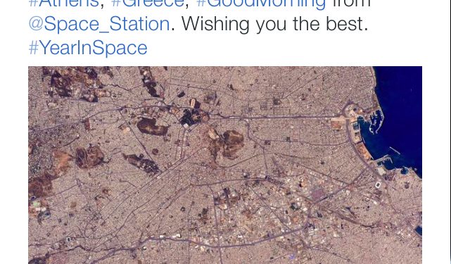 “Ελλάδα καλημέρα. Σου ευχόμαστε τα καλύτερα”. Το μήνυμα έρχεται από το διάστημα και είναι συγκηνιτικό. Ο ααστροναύτης Σκοτ Κέλλυ από τον διεθνή διαστημικό σταθμό έστειλε μέσω tweet την …διαστημική φωτογραφία της Ελλάδας και τις καλύτερες ευχές του.