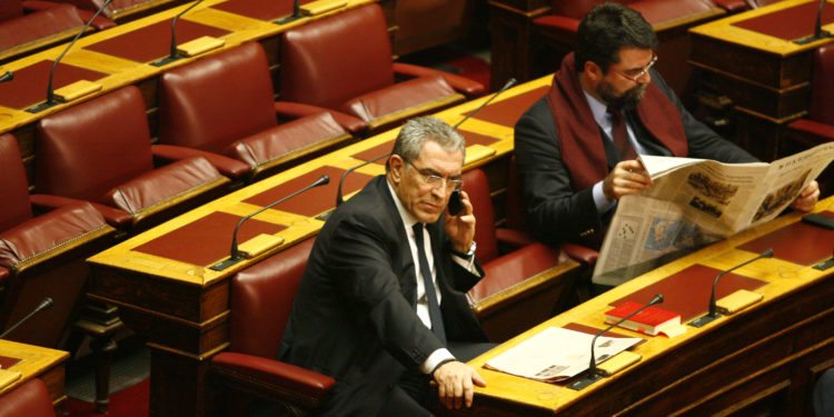 Η φωτογραφία είναι ενδεικτική του κλίματος της πρώτης ψηφοφορίας στην Βουλή για Πρόεδρο της Δημοκρατίας. Καπερνάρος και Οικονόμου δύο από τους βουλευτές που το όνομά τους είχε συζητηθεί δείχνουν πολύ χαλαροί,λίγο πριν από την ψηφοφορία.