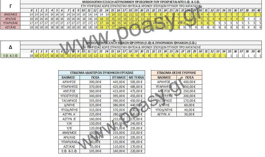 - Ανθυπαστυνόμος με 34 έτη και μια ημέρα υπηρεσίας χωρίς το στρατό και έγγαμος, με το νέο μισθολόγιο λαμβάνει το 7ο κλιμάκιο της Β κατηγορίας, έχι προσωπική διαφορά 135 ευρώ περίπου και δεν θα καλύψει ποτέ την εν λόγω διαφορά