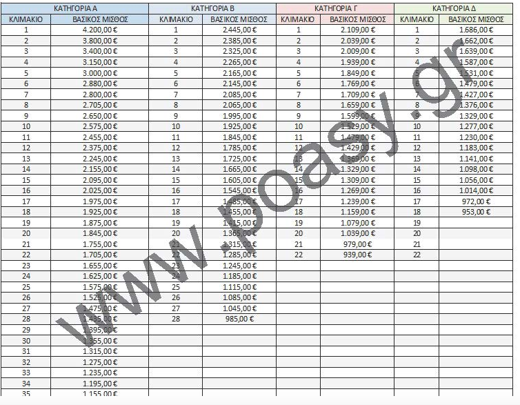 Αφου υπολογίσεις τα έτη υπηρεσίας σου, πηγαίνεις στην κατηγορία που ανήκεις με βάση την προέλευση σου, βρίσκεις το μισθολογικό κλιμάκιο που σου αναλογεί με βάση τα έτη υπηρεσία σου και εν συνεχεία πας το πίνακα με τους βασικούς μισθούς της κατηγορίας σου και βλέπεις πόσο θα ειναι ο βασικός σου.