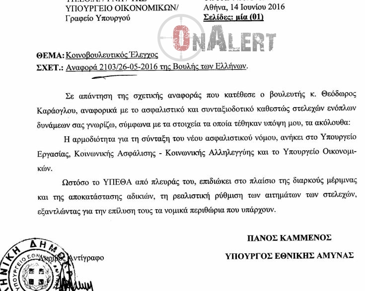 Η αναφορά αφορούσε τις προτάσεις που έχει καταθέσει η Πανελλήνια Ομοσπονδία Στρατιωτικών και ο κ. Καμμένος απάντησε σχετικά: