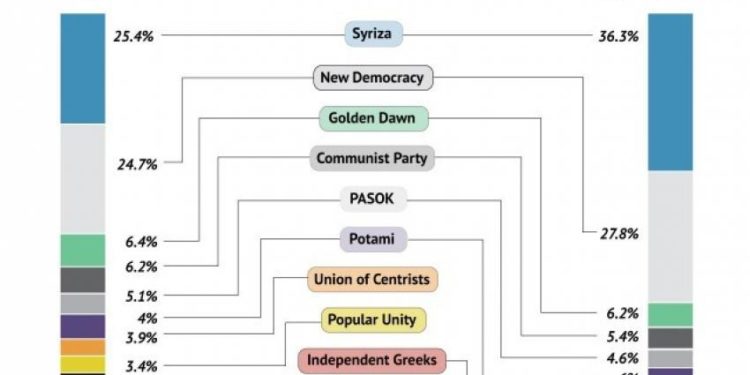 Σύμφωνα με την ανάλυση μονοκομματική κυβέρνηση είναι απίθανο να υπάρξει. Ούτε ο ΣΥΡΙΖΑ,ούτε η ΝΔ είναι κοντά σ΄ αυτό το στόχο.
