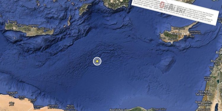 Η περιοχή που δεσμεύει η ΝΟΤΑΜ όπως μπορείτε να δείτε από τον διαδραστικό χάρτη του Onalert.gr, έχει επίκεντρο ένα σημείο νοτιοανατολικά της Κρήτης και βορεια, βορειοδυτικά της Αλεξάνδρειας, και εκτείνεται 40 μίλια από αυτό το σημείο.