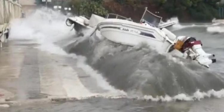 Είναι η στιγμή στην Επίδαυρο, που τα μανιασμένα κύματα βγάζουν τα δεμένα σκάφη από τη θάλασσα στη στεριά. Όταν οι ιδιοκτήτες τους πλησίασαν για να διαπιστώσουν την κατάσταση, δεν μπορούσαν να κάνουν απολύτως τίποτα…