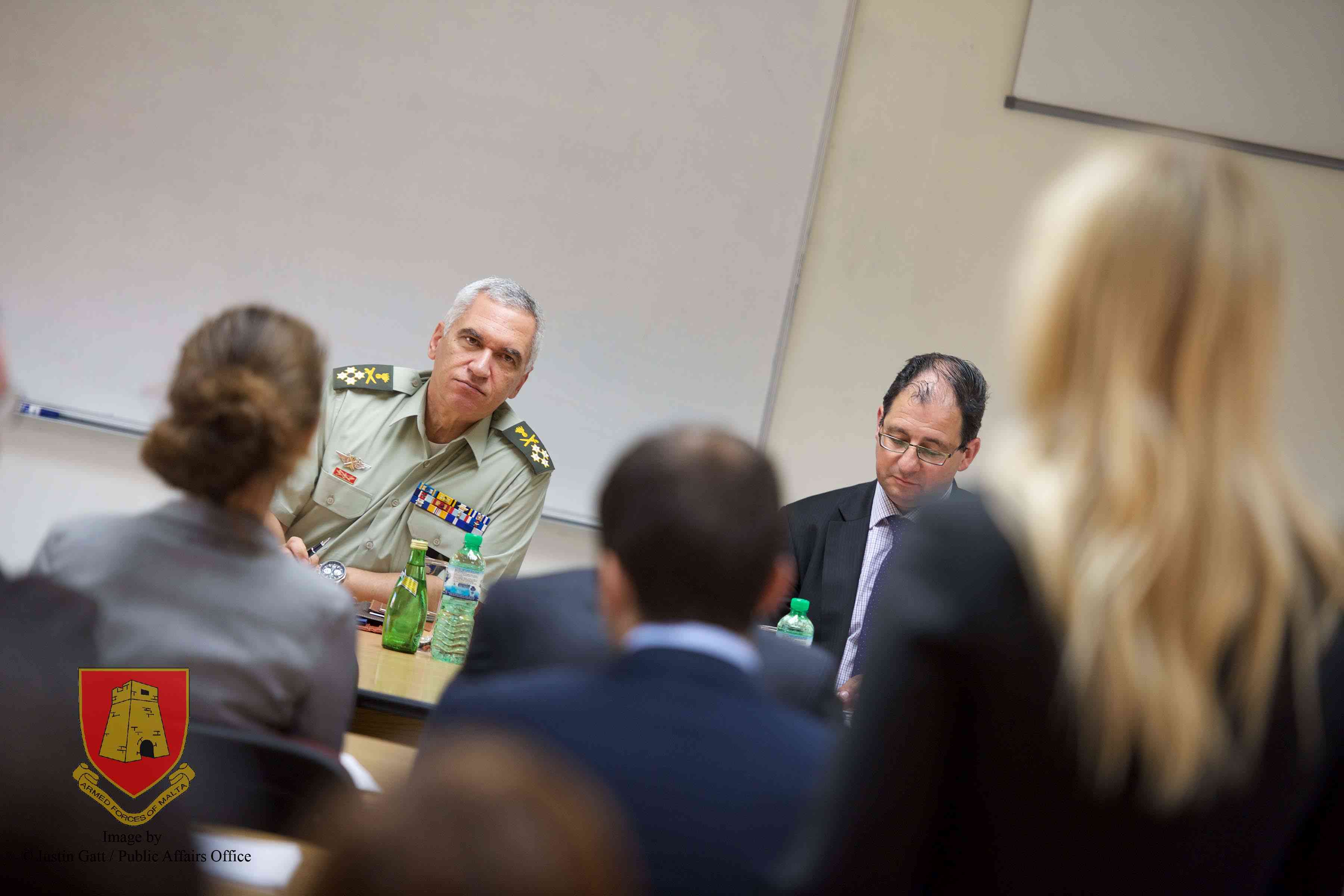 Ο Έλληνας Στρατηγός, επισκέφθηκε επίσης την Ακαδημία Διπλωματικών Σπουδών στο Πανεπιστήμιο της Μάλτας, όπου πραγματοποίησε ομιλία στους σπουδαστές της Ακαδημίας, με θέμα «Παγκόσμια Στρατηγική της ΕΕ:» Η Στρατιωτική της Διάσταση».