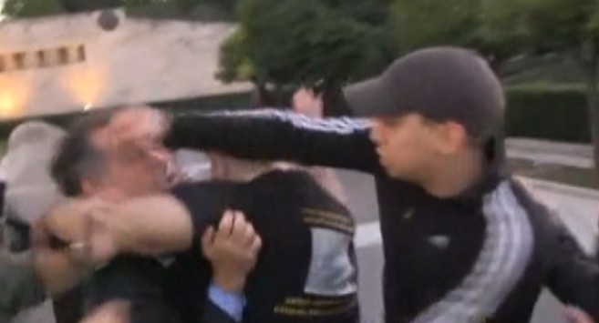 Φαίνεται ξεκάθαρα και στο βίντεο πως κάποιοι αρχίζουν να του πετούν νερά, κάποιος τον πλησιάζει και του ρίχνει μπουνιά στο πρόσωπο, με την αστυνομία να βλέπει τον συγκεκριμένο άντρα και να μην κάνει το αυτονόητο, δηλαδή να τον συλλάβει.