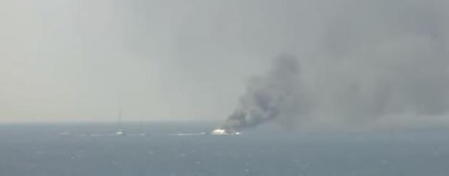 Και οι 9 επιβαίνοντες είναι σώοι. Στο σημείο έχει σπεύσει σκάφος του λιμενικού και προσπαθεί να σβήσει την φωτιά.