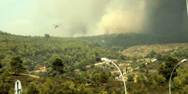Νέες αναζωπυρώσεις δυνάμωσαν τη φωτιά και δυσκόλεψαν το έργο των πυροσβεστών. Η Πυροσβεστική επιδιώκει να βελτιώσει την εικόνα της φωτιάς πριν σκοτεινιάσει, όταν θα αποσυρθούν τα εναέρια μέσα.