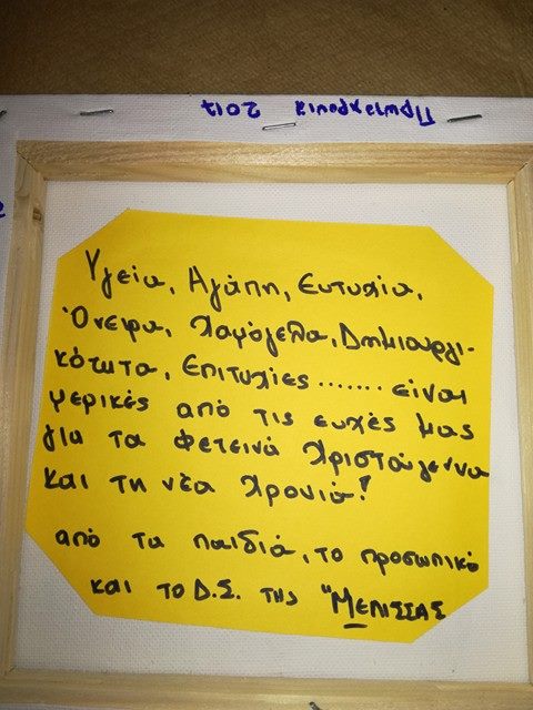 Μέλη του διοικητικού συμβουλίου της Ένωσης και μέλη του διοικητικού συμβουλίου της «Μέλισσας» αντάλλαξαν ευχές και δώρα και προσέφεραν όλη τους την αγάπη στα παιδιά. Μαλίστα, τα παιδιά είχαν ετοιμάσει κάποιες όμορφες ζωγραφιές και τις προσέφεραν στην Ε.Σ.ΠΕ.Κ.Μακεδονίας.