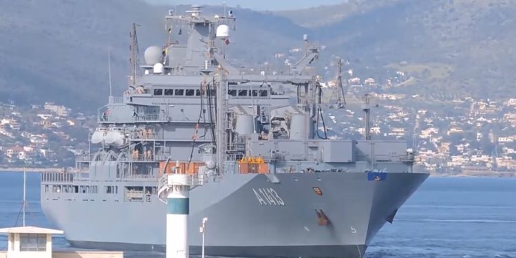 Το πλοίο γενικής υποστήριξης BONN Με τον χαρακτηριστικό αριθμό A1413 κατέπλευσε στον Πειραιά μια μέρα μετα την αναχώρηση του Καναδέζικου HCMS Fredericton.