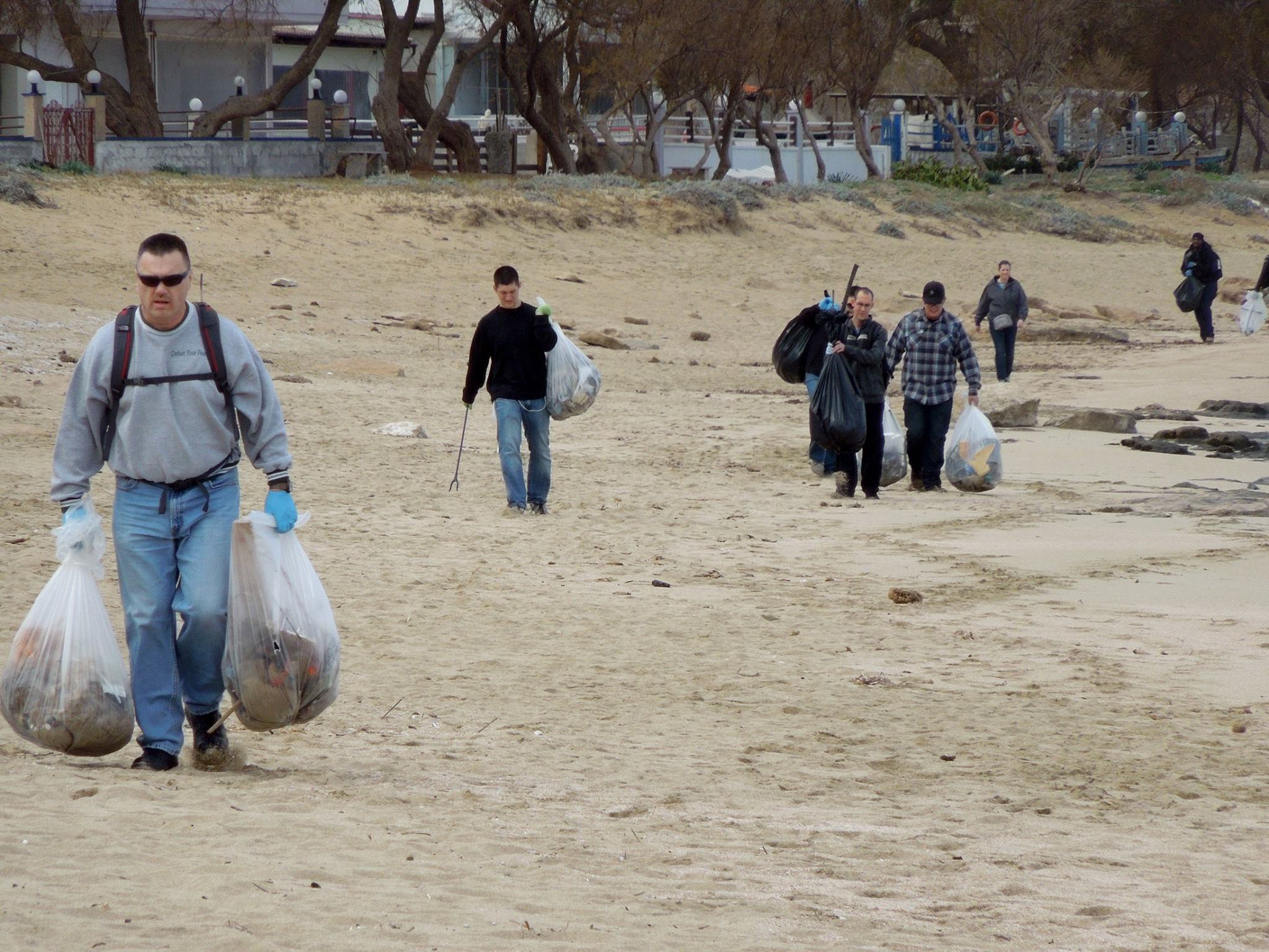 Σε εθελοντικό καθαρισμό της παραλίας του Σταυρού στα Χανιά προχώρησε ομάδα του πληρώματος του αμερικανικού αεροπλανοφόρου George H.W. Bush που βρίσκεται στη βάση της Σούδας.